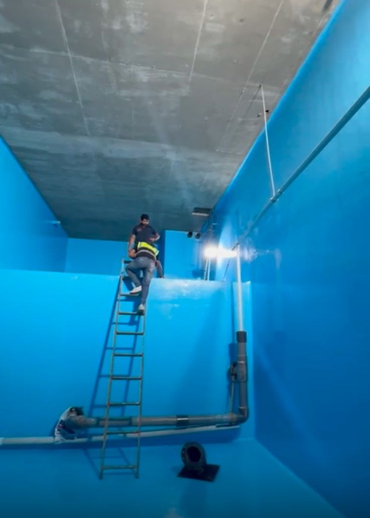 - يقوم فني عزل خزانات المياه بتلييس الخزان من كافة الجوانب والجدران والأرضية، وكافة الزوايا.